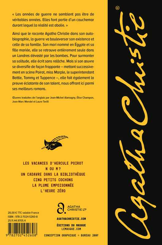 Ainsi que le raconte Agatha Christie dans son autobiographie, la guerre va bouleverser son existence et celle de sa famille. Son mari nommé en Égypte et sa fille mariée, elle se retrouve entièrement seule dans un Londres dévasté par les bombes. Pour surmonter sa solitude, elle écrit sans relâche. Mais si son œuvre se diversifie de façon frappante – mettant successivement en scène Poirot, miss Marple, le superintendant Battle, Tommy et Tuppence –, elle fait également la preuve éclatante de son talent, nous offrant ici parmi ses meilleurs romans.