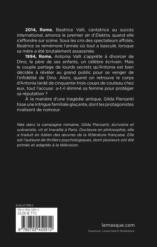 2014, Rome. Beatrice Valli, cantatrice au succès international, amorce le premier air d’Elektra, quand elle s’éffondre sur scène. Sous les cris des spectateurs affolés, Beatrice se remémore l’année où tout a basculé, lorsque sa mère a été brutalement assassinée.