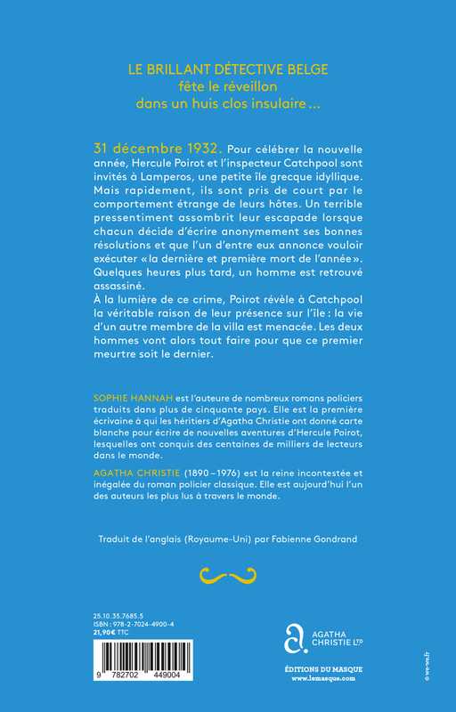 31 décembre 1932. Pour célébrer la nouvelle année, Hercule Poirot et l’inspecteur Catchpool sont invités à Lamperos, une petite île grecque idyllique. Mais rapidement, ils sont pris de court par le comportement étrange de leurs hôtes. Un terrible pressentiment assombrit leur escapade lorsque chacun décide d’écrire anonymement ses bonnes résolutions et que l’un d’entre eux annonce vouloir exécuter « la dernière et première mort de l’année ». Quelques heures plus tard, un homme est retrouvé assassiné.
