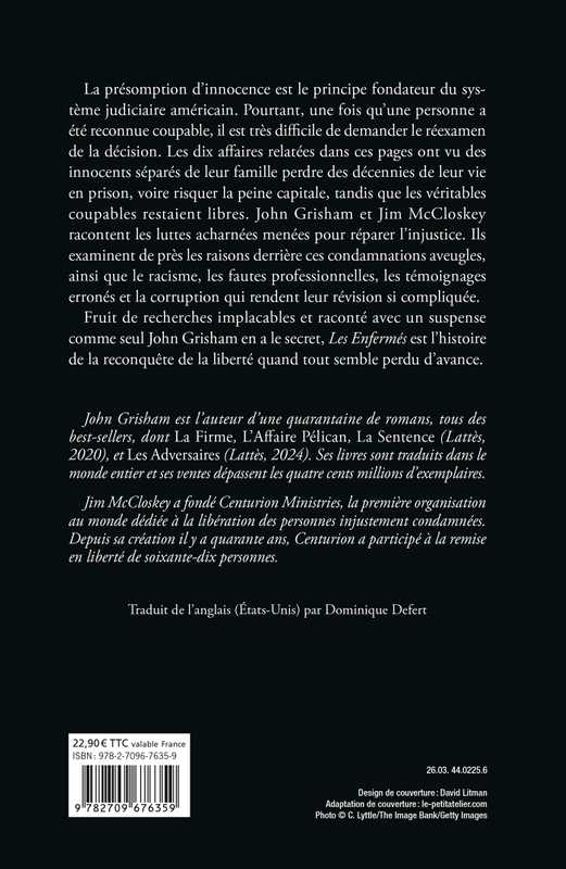 La présomption d’innocence est le principe fondateur du système judiciaire américain. Pourtant, une fois qu’une personne a été reconnue coupable, il est très difficile de demander le réexamen de la décision. Les dix affaires relatées dans ces pages ont vu des innocents séparés de leur famille perdre des décennies de leur vie en prison, voire risquer la peine capitale, tandis que les véritables coupables restaient libres. John Grisham et Jim McCloskey racontent les luttes acharnées menées pour réparer l’injustice. Ils examinent de près les raisons derrière ces condamnations aveugles, ainsi que le racisme, les fautes professionnelles, les témoignages erronés et la corruption qui rendent leur révision si compliquée.