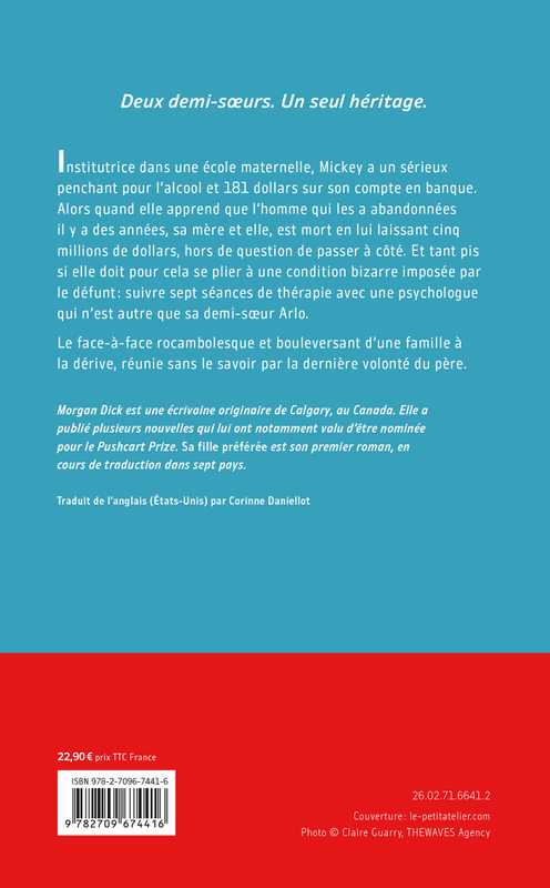 Institutrice dans une école maternelle, Mickey a un sérieux penchant pour l’alcool et 181 dollars sur son compte en banque. Alors quand elle apprend que l’homme qui les a abandonnées il y a des années, sa mère et elle, est mort en lui laissant cinq millions de dollars, hors de question de passer à côté. Et tant pis si elle doit pour cela se plier à une condition bizarre imposée par le défunt : suivre sept séances de thérapie avec une psychologue qui n’est autre que sa demi-sœur Arlo.
